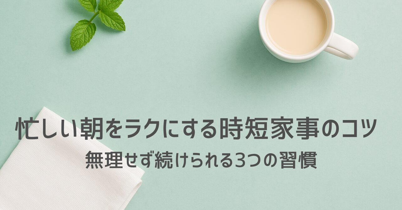 この記事では、共働き家庭やワンオペ育児など忙しいママでも無理なく続けられる「朝のゆる時短家事を続けられる3つの習慣」をご紹介します。