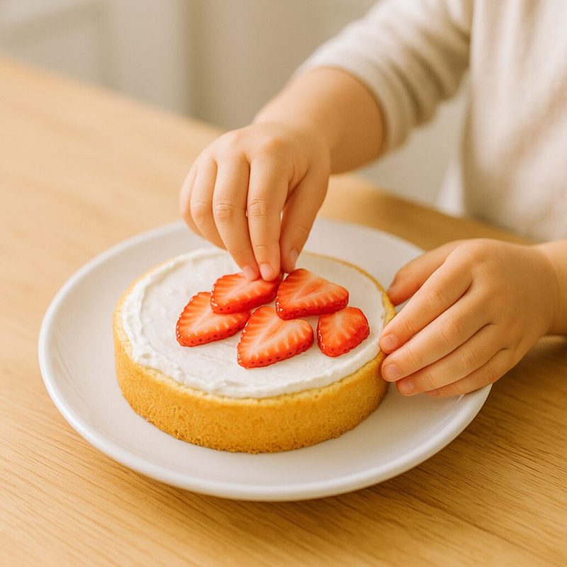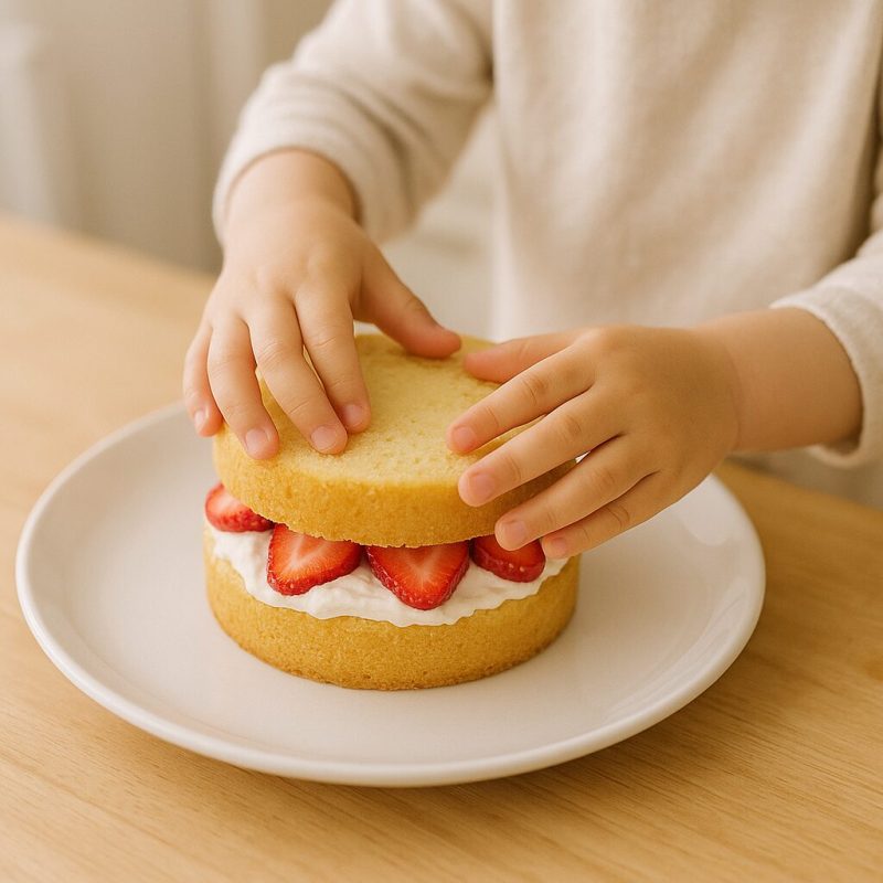 子どもが自分でできたと感じやすい工程が多いのも、ショートケーキの魅力です。