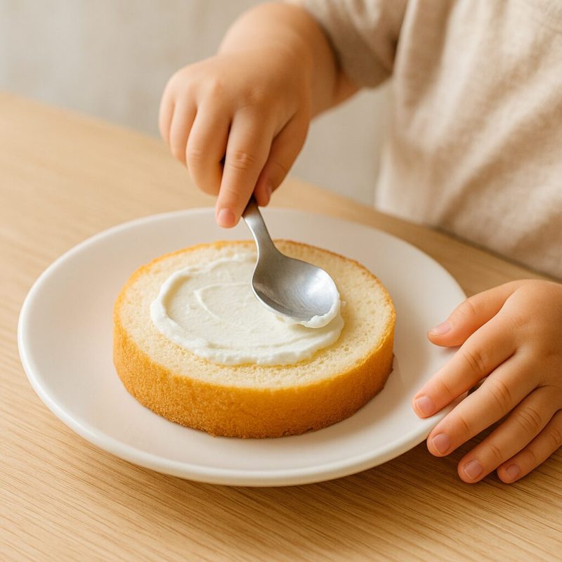 市販のスポンジケーキやホイップクリームを使うことで、生地作りや焼き時間を気にする必要がなく、子どもと作る工程に集中できます。