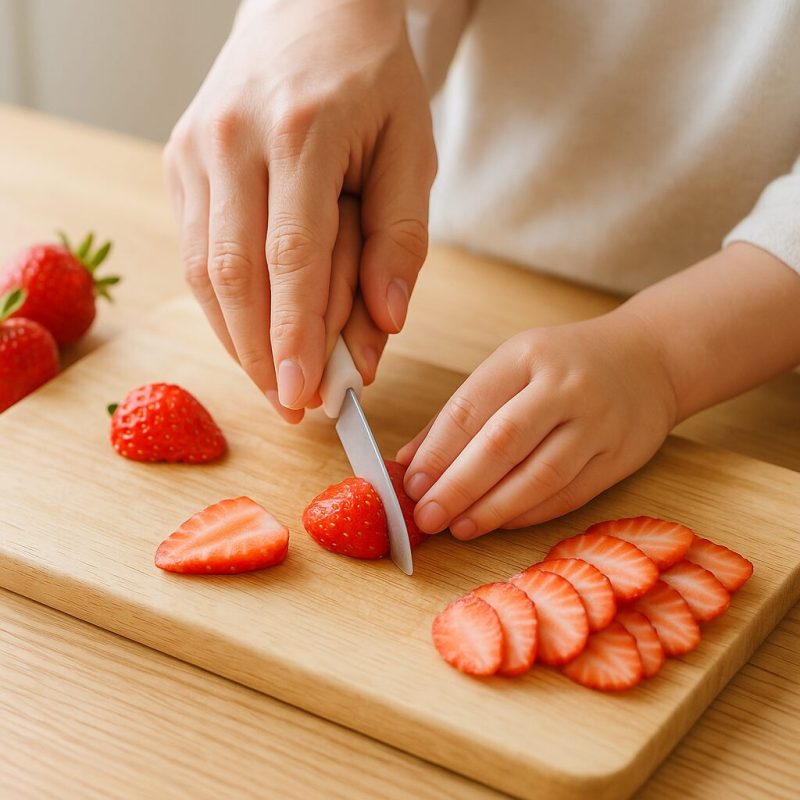 ※子どもが切る場合は、キッズ包丁など安全なものを使い、大人がそばで見守りながら行いましょう。