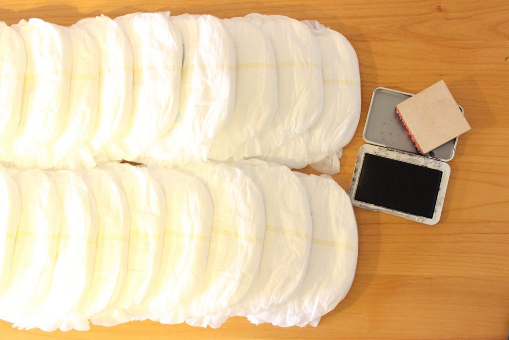 おむつや衣類など、布製品が多い場合はスタンプが便利です。
